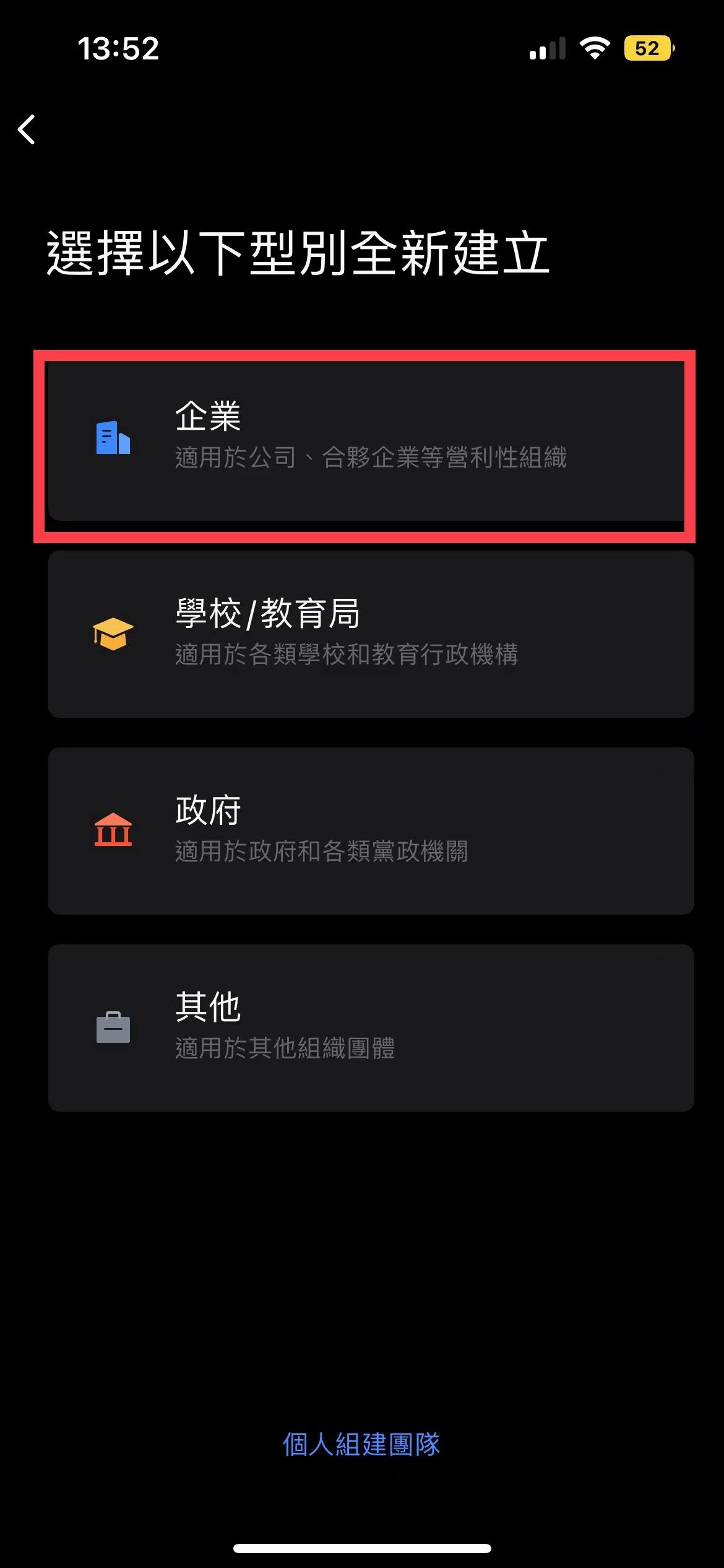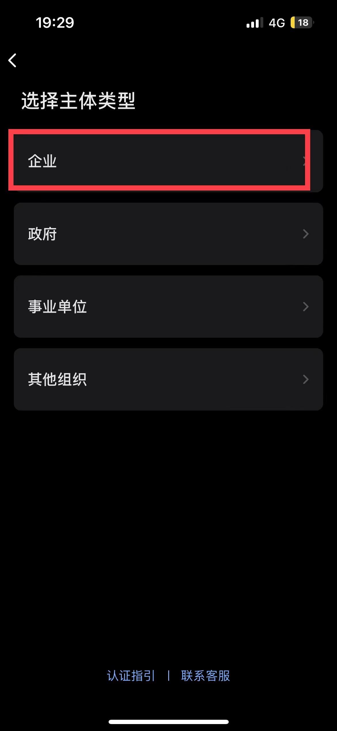 根据客户需求对需要建立的组织进行选择,这里我们选择建立企业。